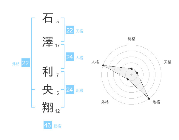 石澤 利央翔さんを姓名の画数から五運を鑑定