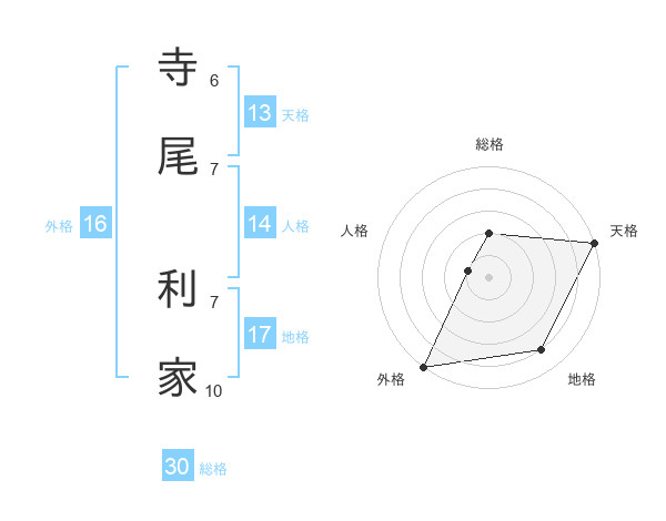 寺尾 利家さんの天格は13画の5点!