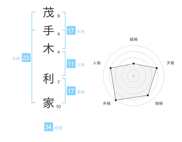 茂手木 利家さんの地格は17画の4点!