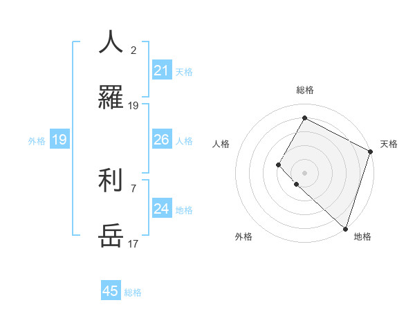 人羅 利岳さんの天格は21画の5点!