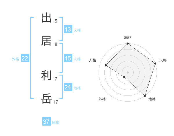 出居 利岳さんを姓名の画数から五運を鑑定