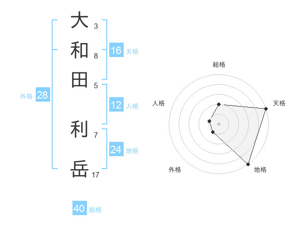 大和田 利岳さんを姓名の画数から五運を鑑定
