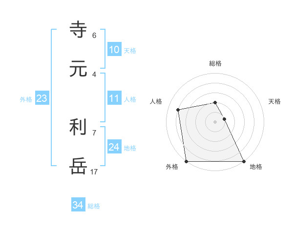 寺元 利岳さんを姓名の画数から五運を鑑定