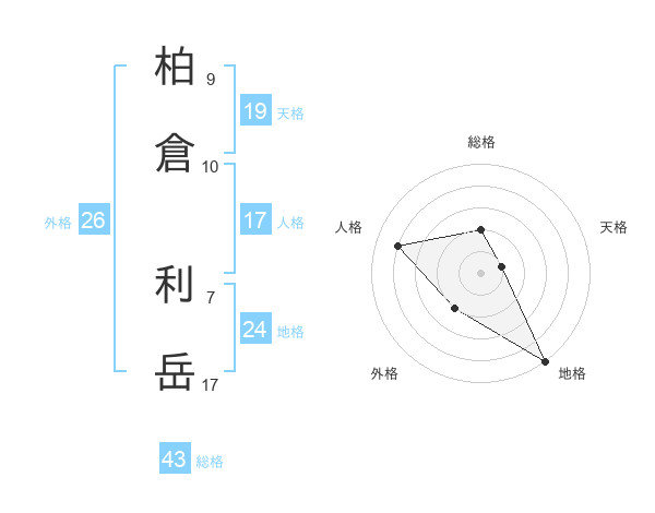 柏倉 利岳さんの総格は43画の2点!