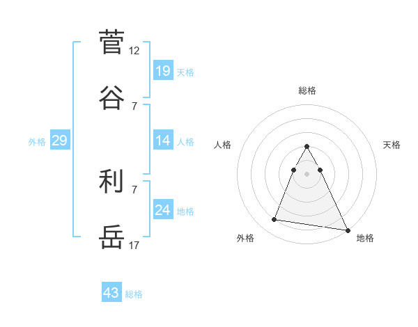 菅谷 利岳さんを姓名の画数から五運を鑑定