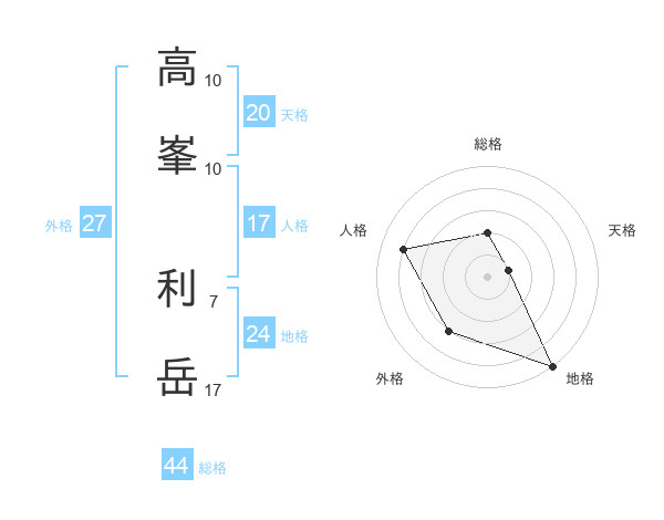 高峯 利岳さんの総格は44画の2点!