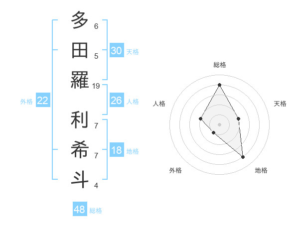 多田羅 利希斗さんを姓名の画数から五運を鑑定
