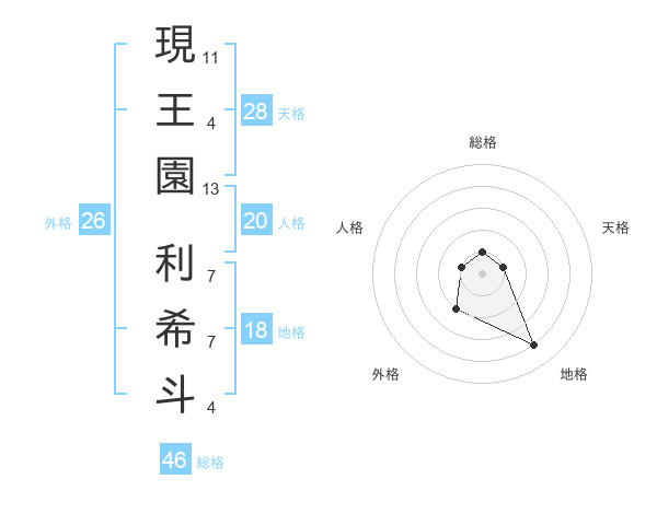 現王園 利希斗さんの総格は46画の1点!