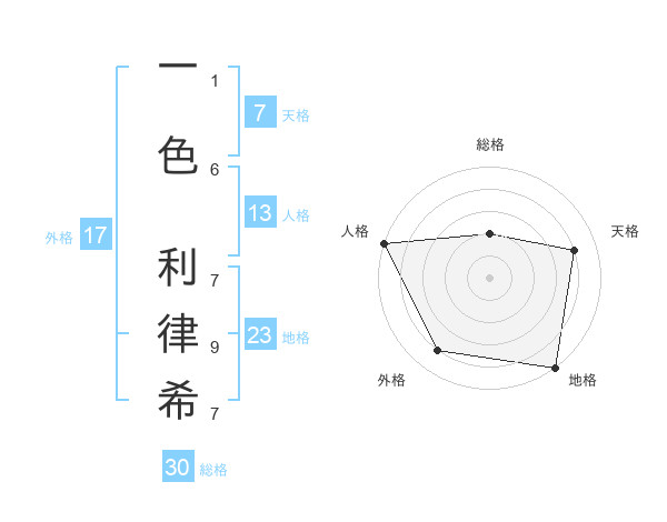 一色 利律希さんの外格は17画の4点!