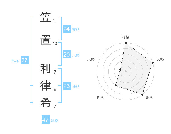 笠置 利律希さんを姓名の画数から五運を鑑定