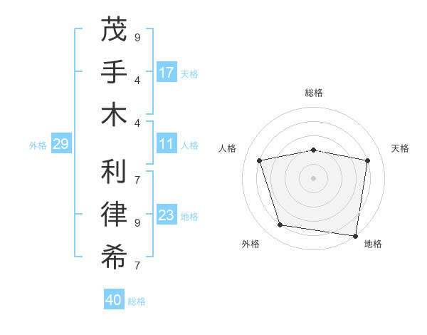 茂手木 利律希さんの天格は17画の4点!