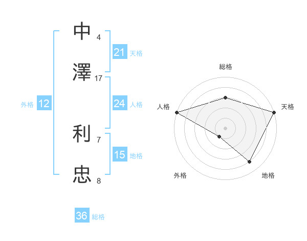 中澤 利忠さんを姓名の画数から五運を鑑定