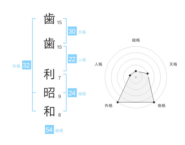 歯歯 利昭和さんの外格は32画の5点!