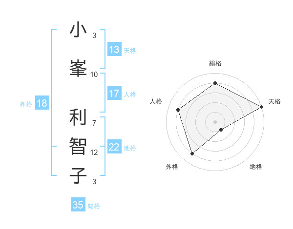小峯 利智子さんを姓名の画数から五運を鑑定
