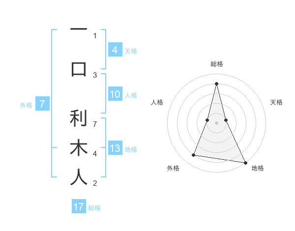 一口 利木人さんの総格は17画の4点!