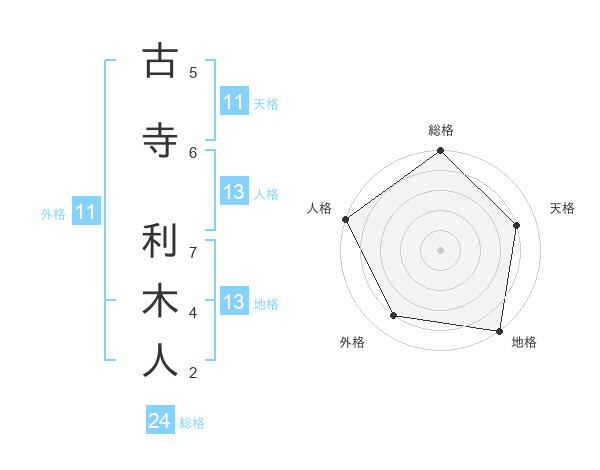 古寺 利木人さんを姓名の画数から五運を鑑定