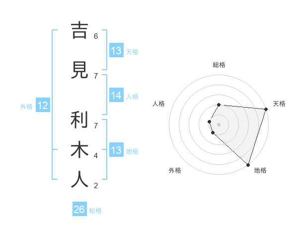 吉見 利木人さんを姓名の画数から五運を鑑定