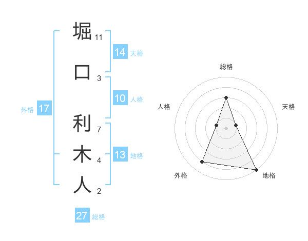 堀口 利木人さんを姓名の画数から五運を鑑定