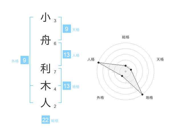 小舟 利木人さんを姓名の画数から五運を鑑定