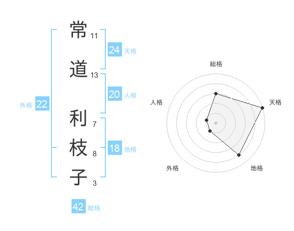 常道 利枝子さんを姓名の画数から五運を鑑定