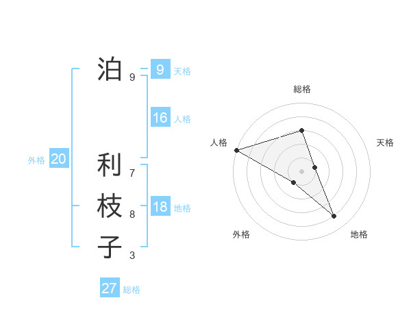 泊 利枝子さんを姓名の画数から五運を鑑定