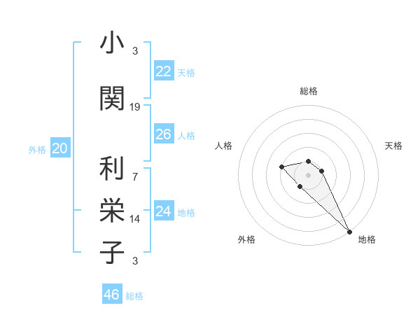 小関 利栄子さんを姓名の画数から五運を鑑定