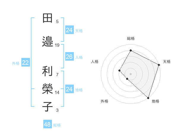 田邉 利榮子さんを姓名の画数から五運を鑑定