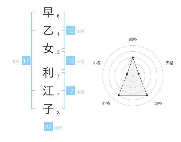 早乙女 利江子さんの総格は27画の3点!