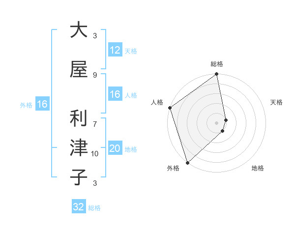 大屋 利津子さんの総格は32画の5点