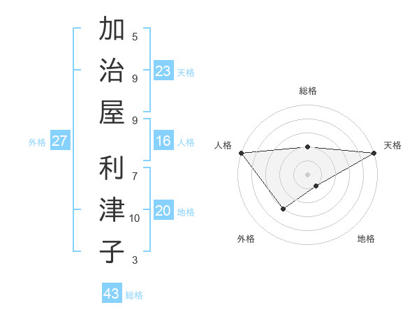 加治屋 利津子さんを姓名の画数から五運を鑑定