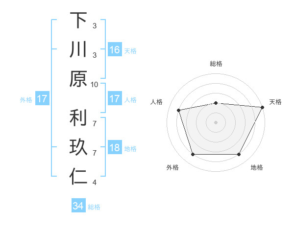 下川原 利玖仁さんを姓名の画数から五運を鑑定