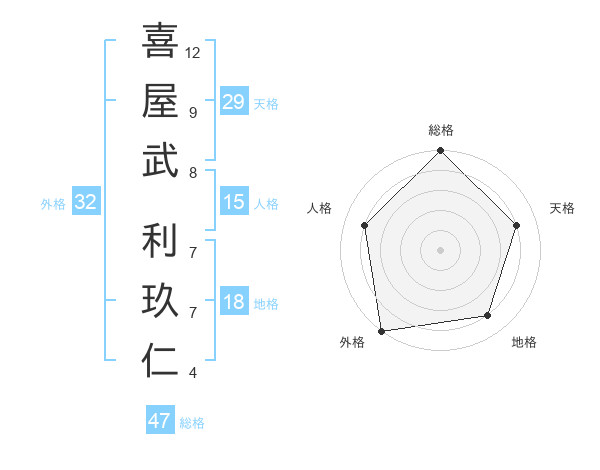 喜屋武 利玖仁さんの総格は47画の5点!