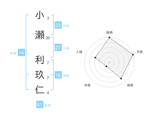 小瀬 利玖仁さんを姓名の画数から五運を鑑定