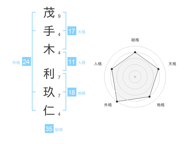 茂手木 利玖仁さんの総格は35画の4点!