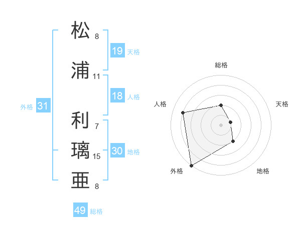 松浦 利璃亜さんを姓名の画数から五運を鑑定