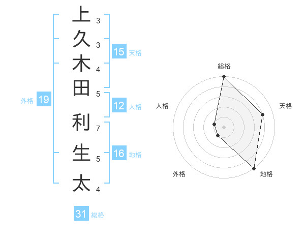 上久木田 利生太さんの総格は31画の5点!