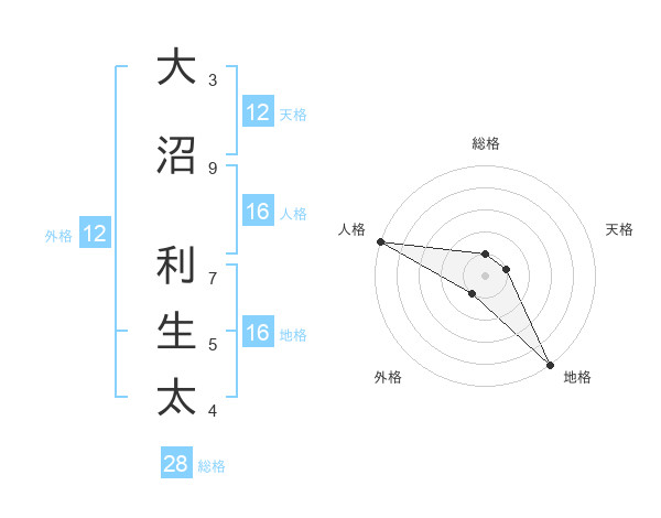 大沼 利生太さんを姓名の画数から五運を鑑定