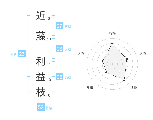 近藤 利益枝さんの総格は52画の4点