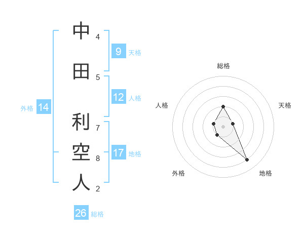 中田 利空人さんの総格は26画の2点