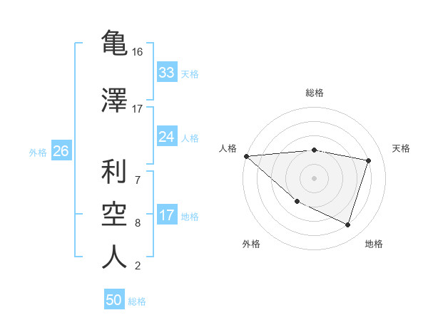 亀澤 利空人さんの総格は50画の2点!