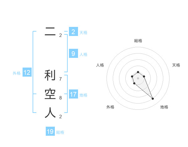 二 利空人さんの地格は17画の4点!