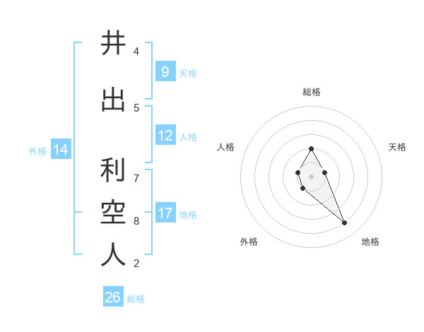 井出 利空人さんの総格は26画の2点!