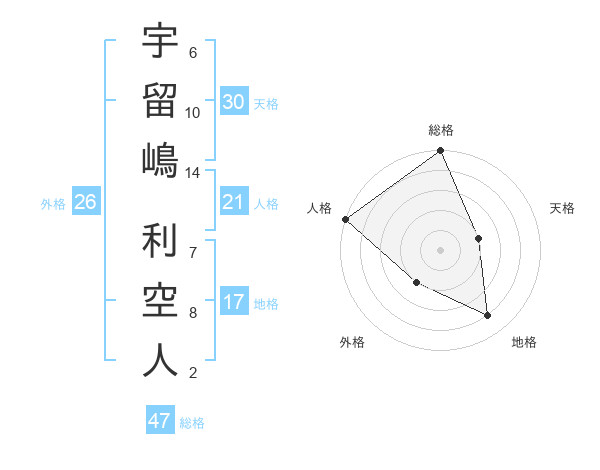 宇留嶋 利空人さんを姓名の画数から五運を鑑定