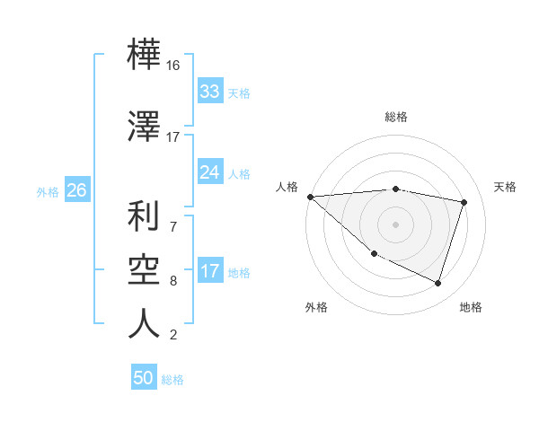 樺澤 利空人さんの総格は50画の2点!