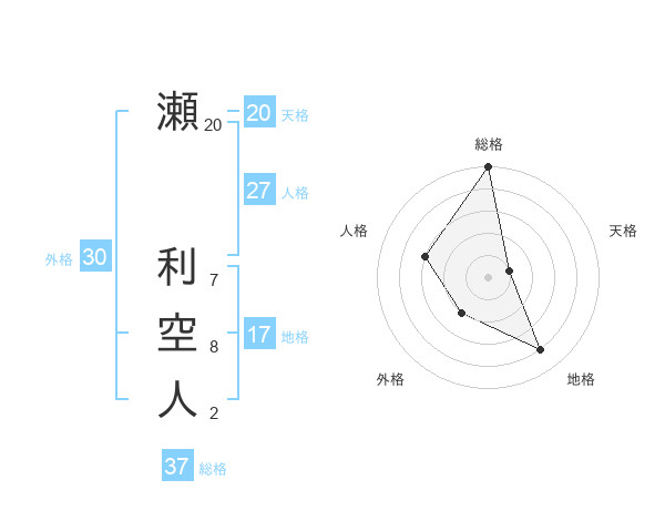 瀬 利空人さんを姓名の画数から五運を鑑定