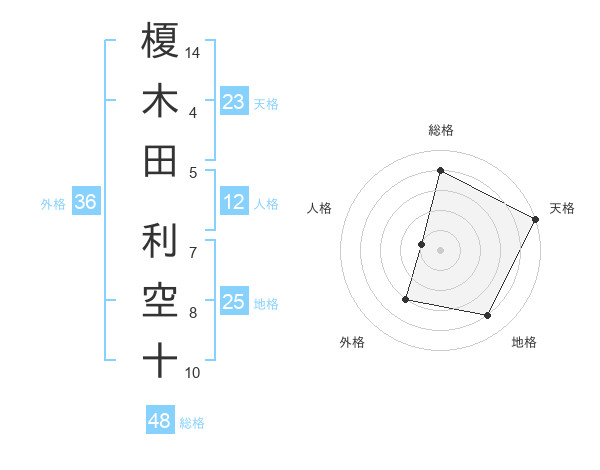 榎木田 利空十さんの天格は23画の5点!