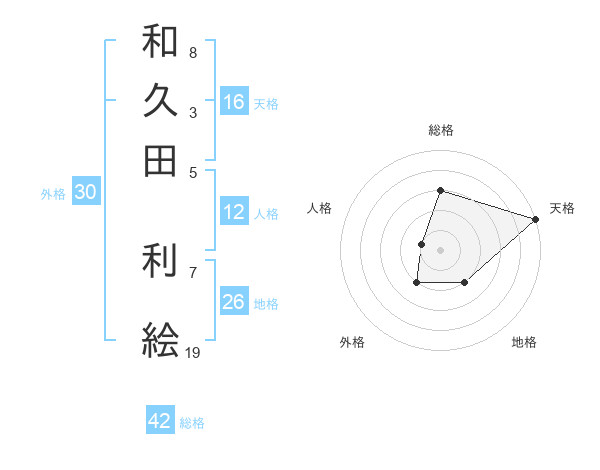 和久田 利絵さんを姓名の画数から五運を鑑定