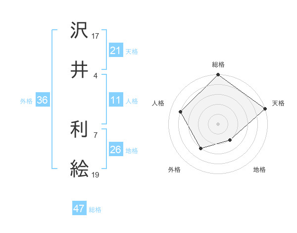 沢井 利絵さんを姓名の画数から五運を鑑定