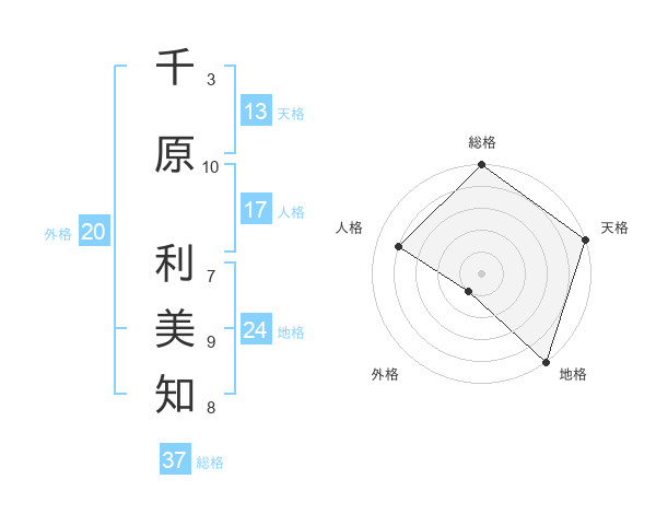 千原 利美知さんの総格は37画の5点!