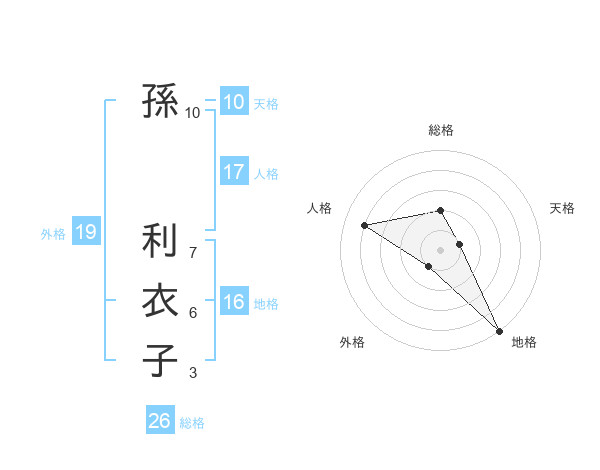 孫 利衣子さんの総格は26画の2点!